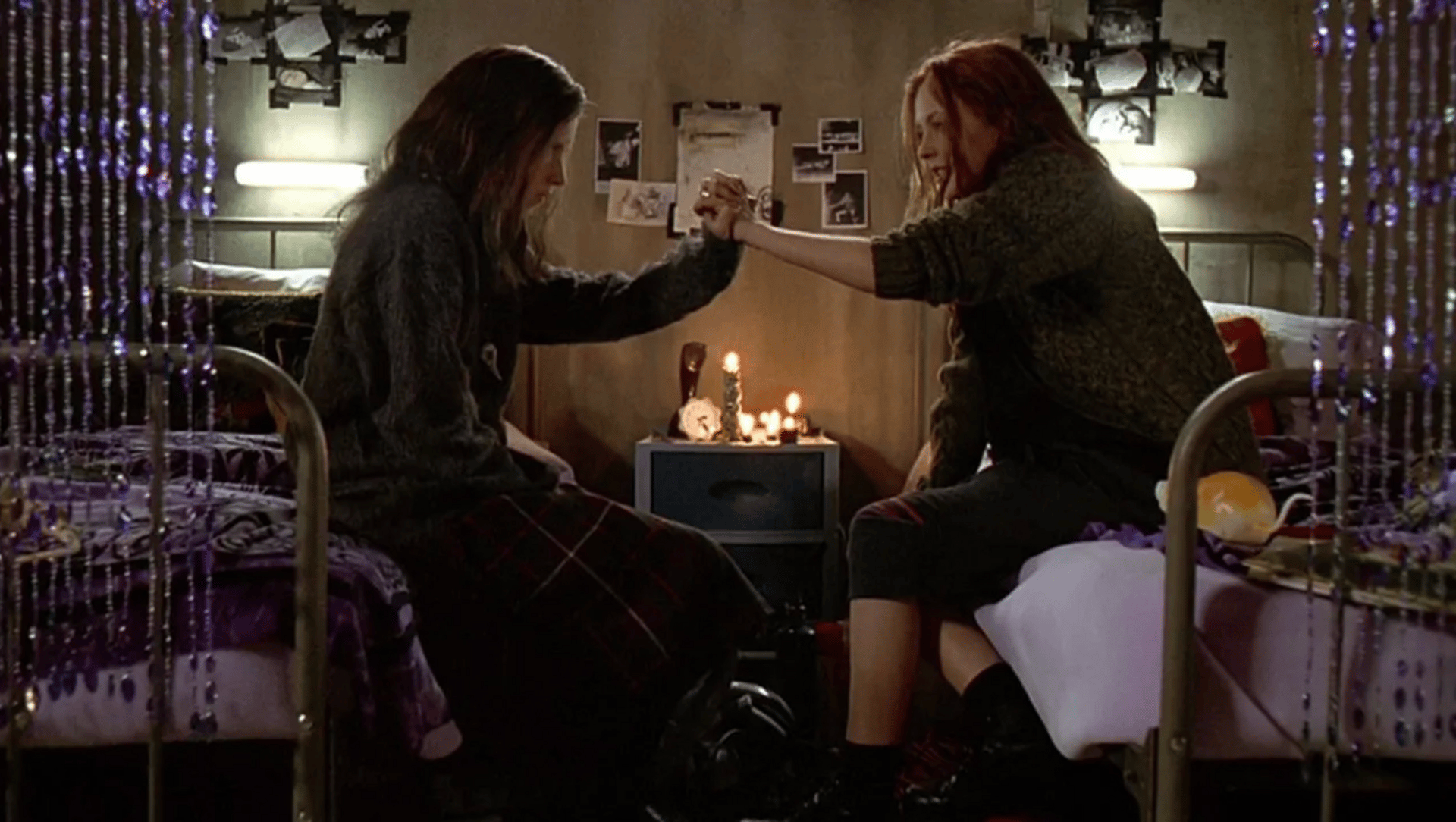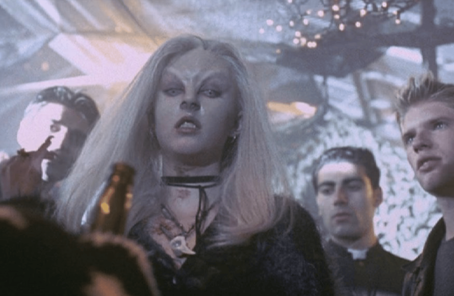 I’m here to share my favorite memory with you guys from shooting Ginger Snaps. If you have seen the film, you will recall a scene towards the end of the movie where Ginger and Brigitte show up at Sam’s party. Ginger’s gonna confront Sam, and it’s the most werewolfed out I am before the character of Ginger becomes a very sweaty, dehydrated jockey in a thick rubber werewolf suit.