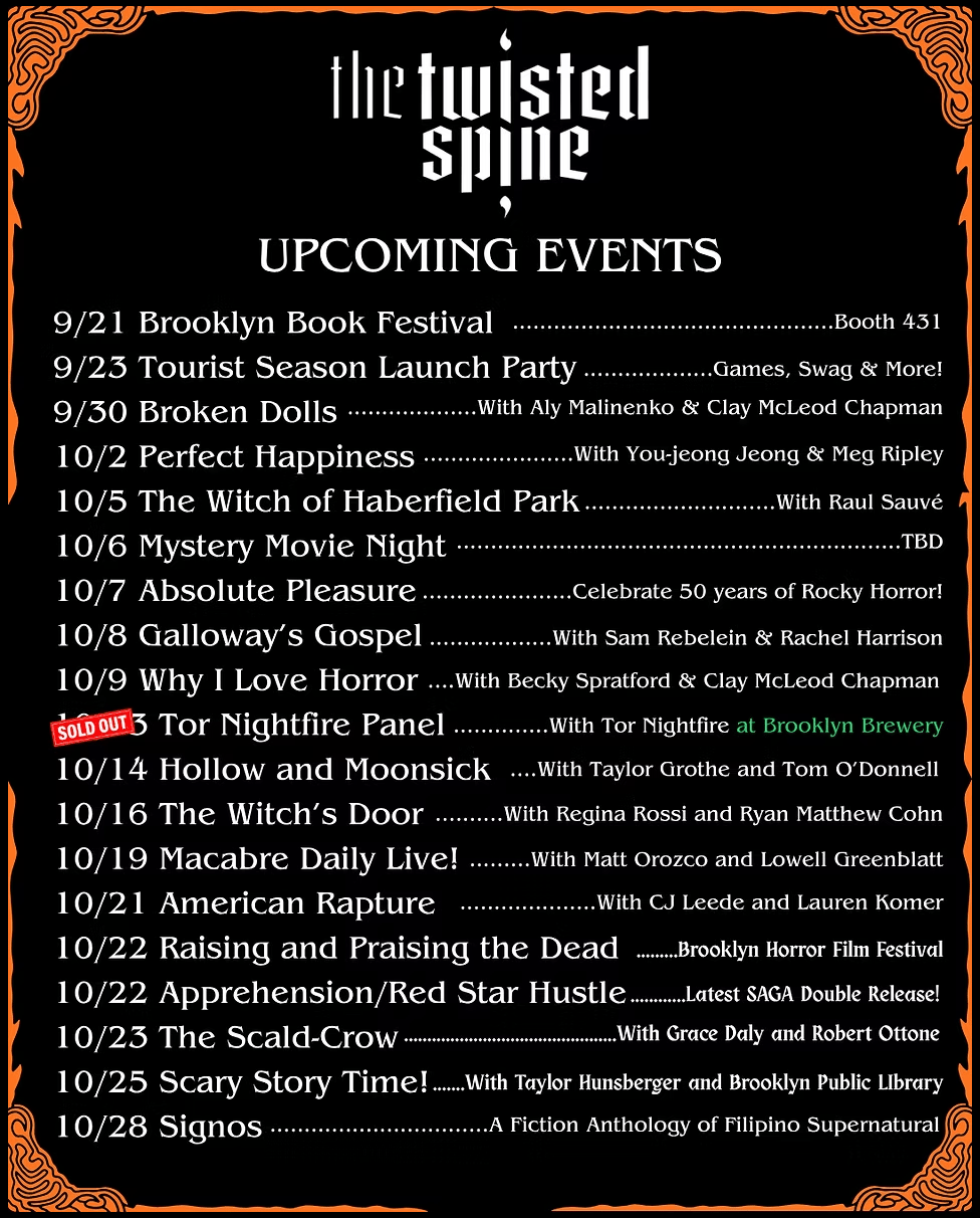 By the time this is published, the event mentioned above will have already happened. You can keep up upcoming events at the Twisted Spine here!